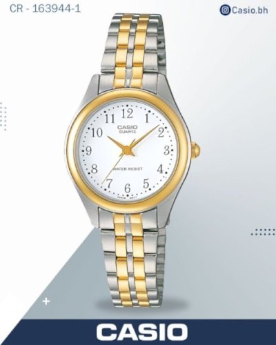 Casio Women's Watch Analog, White Dial Silver & Gold Stainless Steel Strap, LTP-1129G-7BRDF