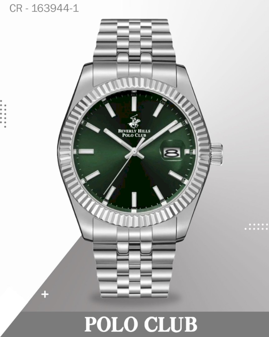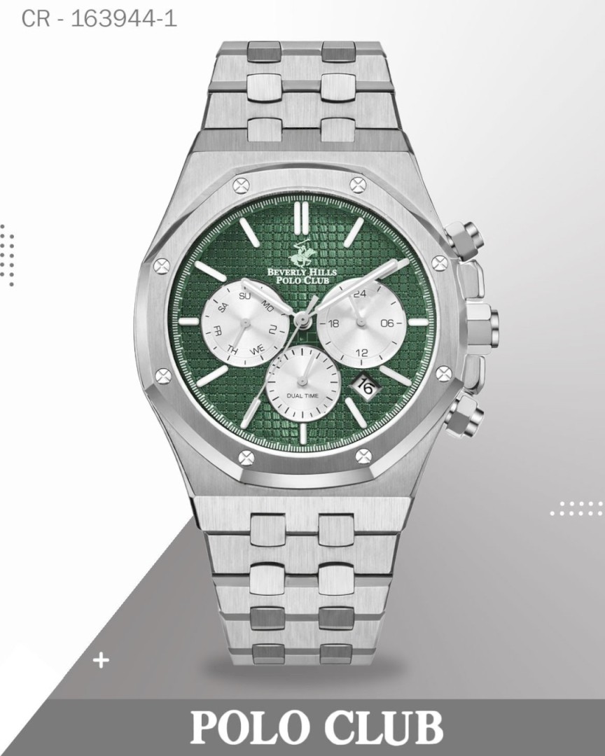 Polo Club Men's Multifunction Watch Green Dial with Silver Stainless Steel Band, BP3051X.371