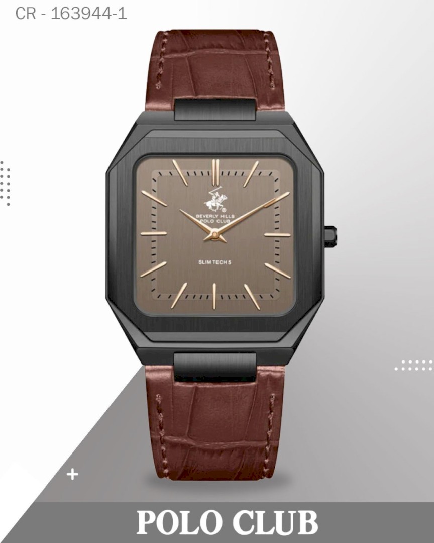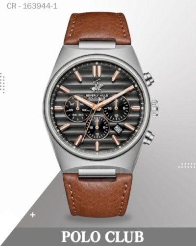 Polo Club Men's Analog Watch, Grey Dial with Brown Leather Strap, BP3865X.062