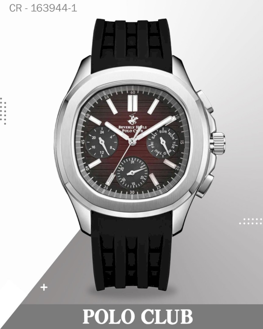 Polo Club Men's Multifunction Analog Watch, Red Dial with Black Silicone Band, BP3211X.381