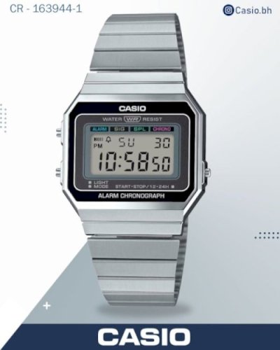 Casio Men's Watch Vintage Digital, Black Dial Silver Stainless Steel Strap, A700W-1ADF
