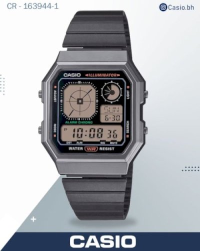 Casio Men's Watch Digital Black Dial with Grey Stainless Steel Band, A130WEGG-1ADF