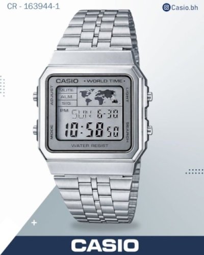 Casio Men's Watch Digital Dial Silver Dial with Silver Stainless Steel Band, A130WE-1ADF