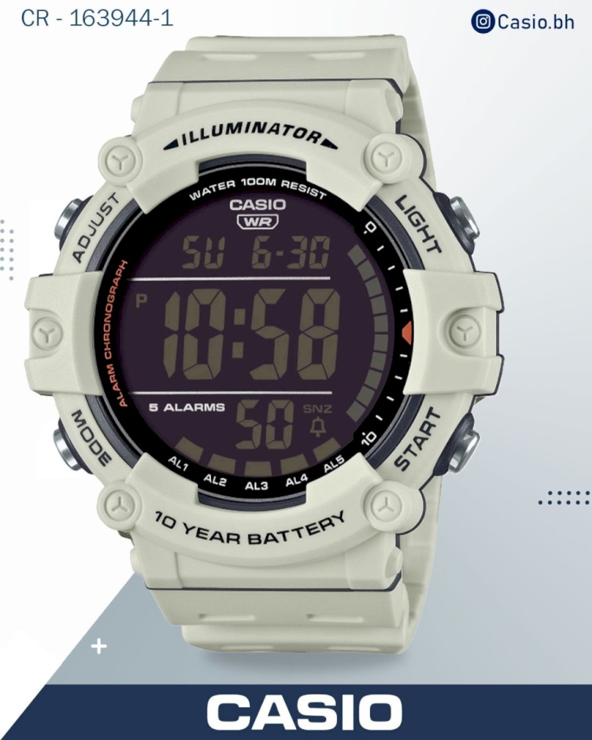 Casio Men's watch Digital, Black Dial White Resin Strap, AE-1500WH-8B2VDF