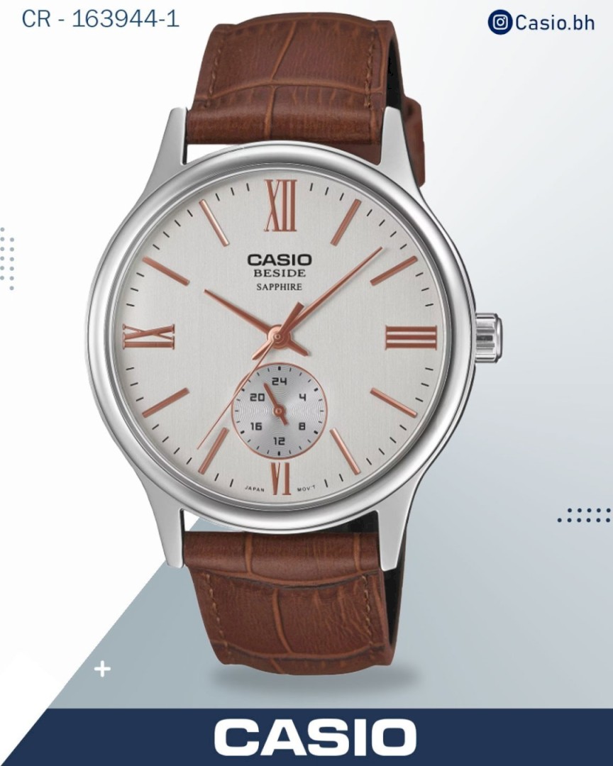 Casio Men's Watch Analog White Dial With Brown Leather Band, BMS-100L-5AV