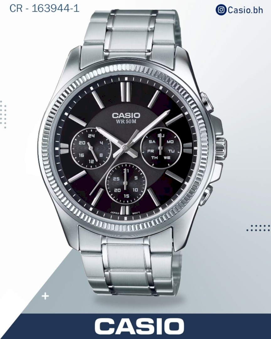 Casio Men's Watch Analog, Black Dial Silver Stainless Steel Strap, MTP-1375D-1AVDF